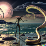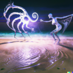 Many of my generations serve to probe the creative potentials of deep neural networks, but some are also meant to stand on their own as esthetic output. My criteria for such images are rather heavily weighted towards surrealism and expressionism, often at the expense of the hyperdetail that seems to be pervade so much AI imagery. I add one each day to my Instagram account <nematicvr>, but I generate more. Here are some recent art images, focusing on various approaches to a surreal look and feel.. Click the images to toggle captioning.