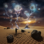 As in my post “Problem with dissimilar actors”, I am basically unable to place discretely dissimilar actors into the same scene. Given that fact, I am concentrating on what I can do—and to that end I had some productive image generating sessions over the last two days. Below are some samples. They are loosely categorized by four themes that seemed to emerge as I worked with MJ.