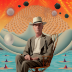 As an experiment to work with an actual photograph in Midjourney, I imported my standard head shot. This the first image in the slide show. I then instructed MJ to modify that image in a surrealist style, which after a few permutations resulted in the second image. It is a fairly accurate depiction of me some years ago, when the head shot photo was taken, but in a surrealist setting. So far, so good, but then things got interesting!